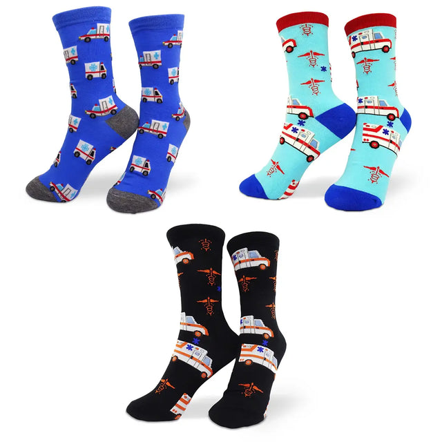Du lebst für den Rettungsdienst? Dann brauchst du dieses Socken-Bundle! Drei Paar ultra-bequeme Socken mit Rettungswagen-Design – perfekt für alle, die Tag und Nacht im Einsatz sind.